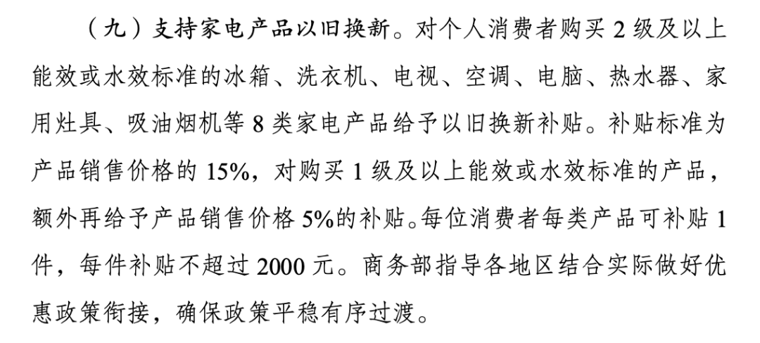 京东在这次国补的基础上,额外投入 65 亿元加码以旧换新, 其中 30 亿用于家电家居商品补贴。